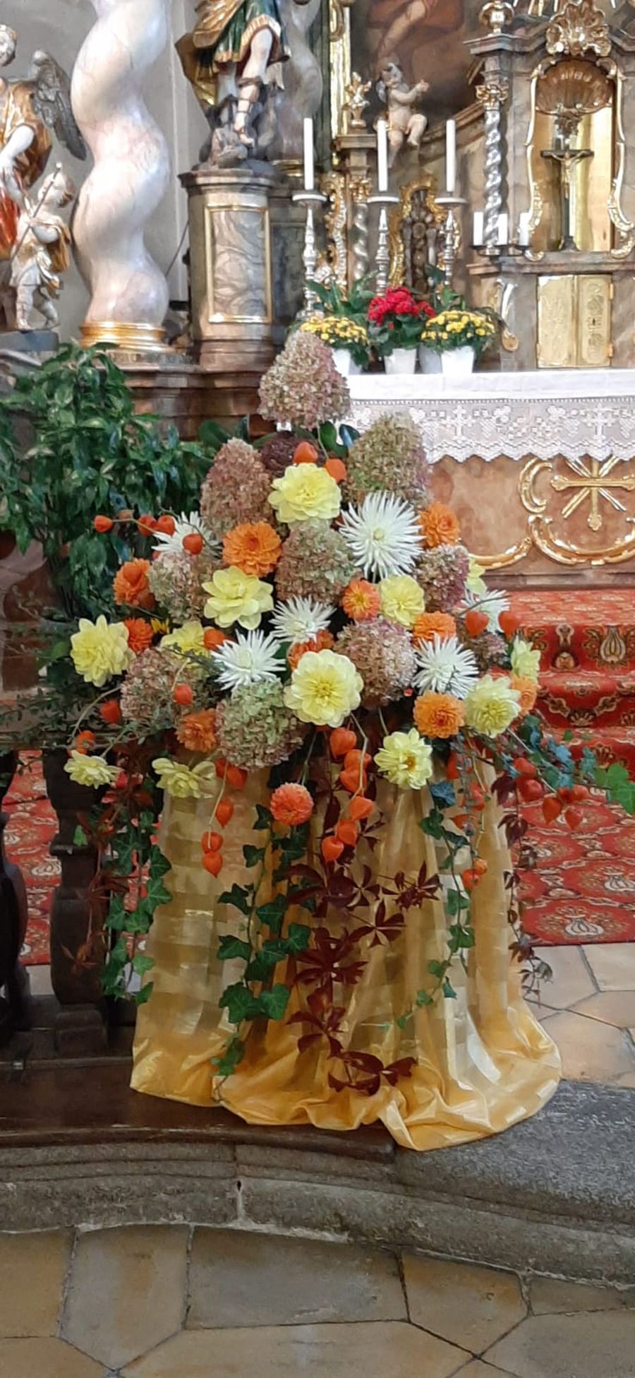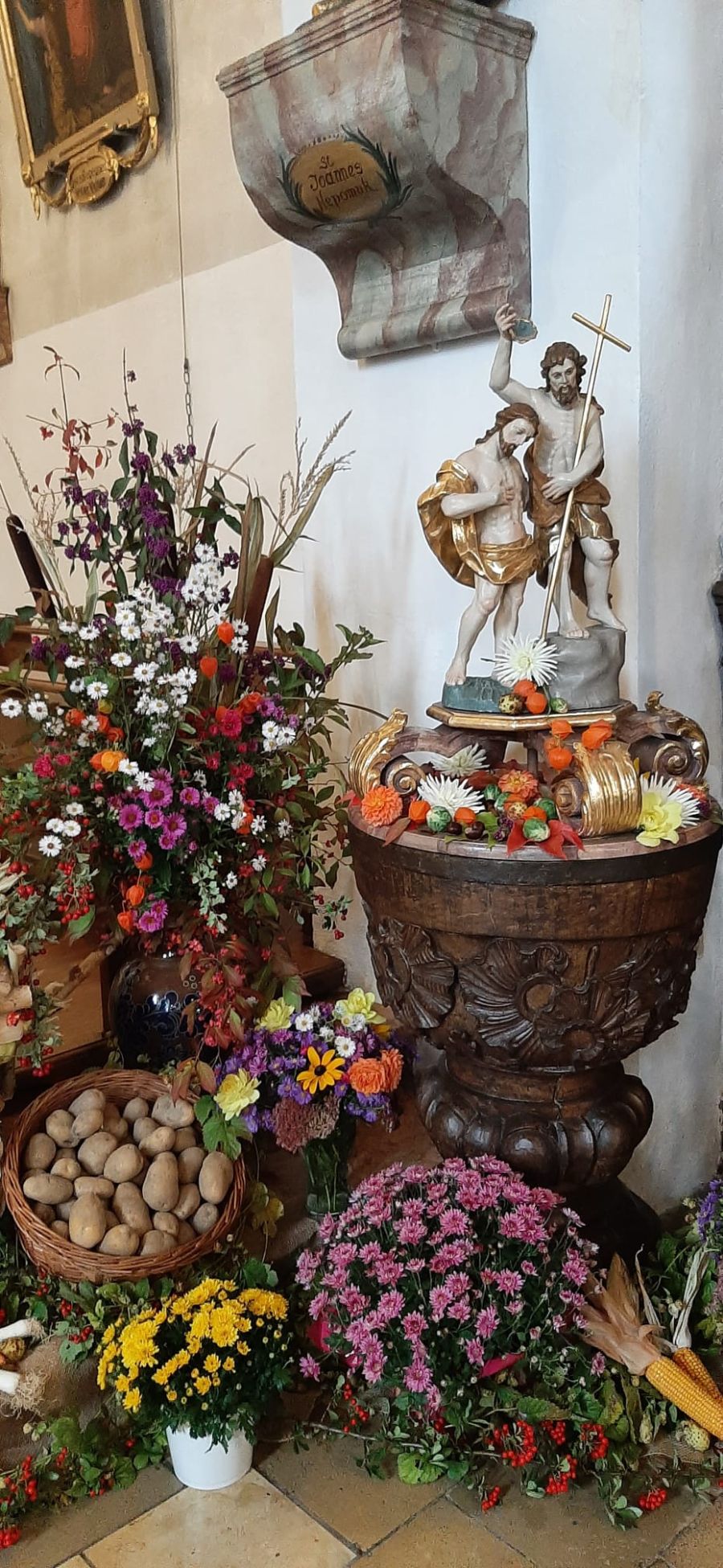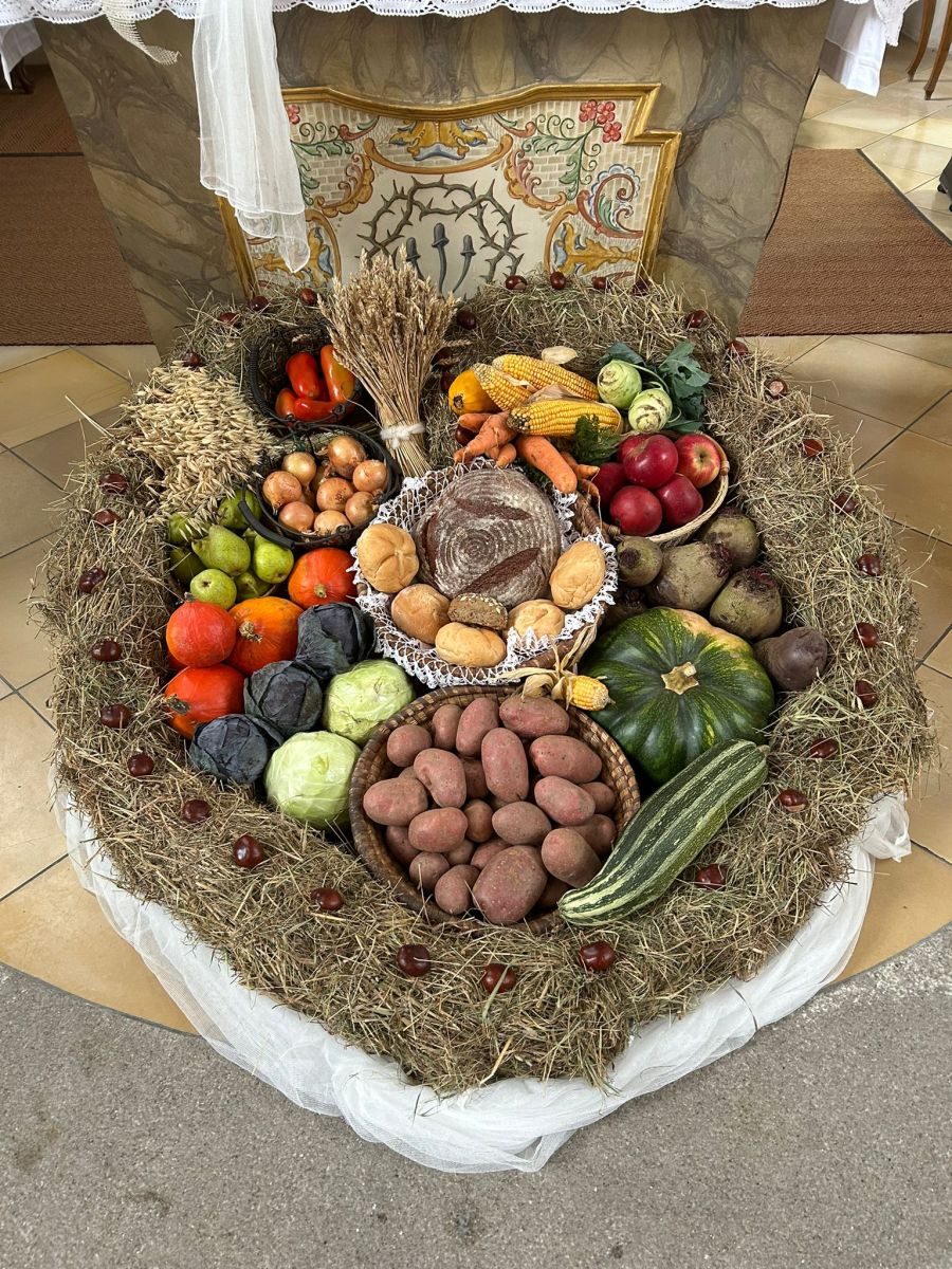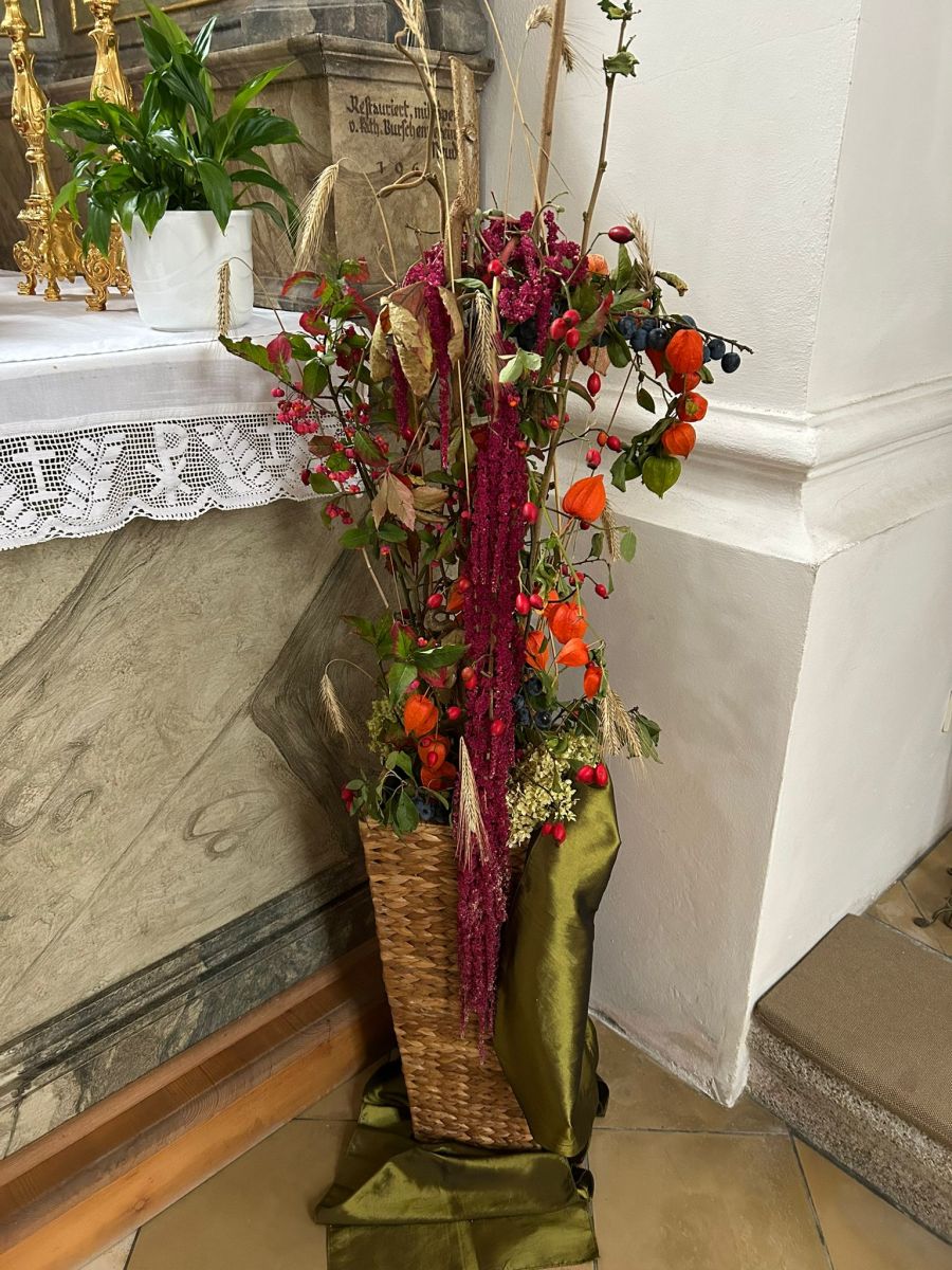 Die Kirchen waren herrlich geschmückt mit den Gaben der Schöpfung. Blumen, Obst, Gemüse und Getreide boten ein herrlich buntes Bild und stellten den Gläubigen vor Augen, wie reich Gott uns in diesem Jahr wieder beschenkt hat.