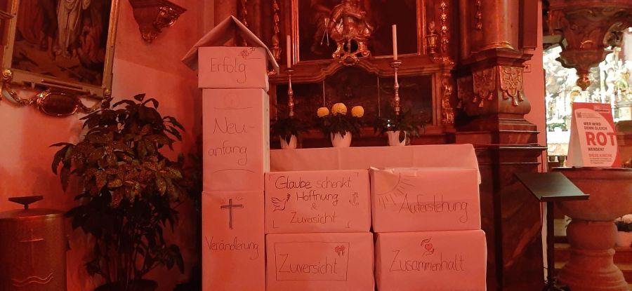 In der Predigt erklärte Pfarrer Arnold Pirner, dass jeder Mensch für seinen „Lebensfarbkasten“ selbst verantwortlich sei, für alles, was in ihm stecke, für seine hellen und dunklen Seiten. Die Fastenzeit biete die Möglichkeit, den Lebensfarbkasten mal wieder etwas genauer zu betrachten und anfallende