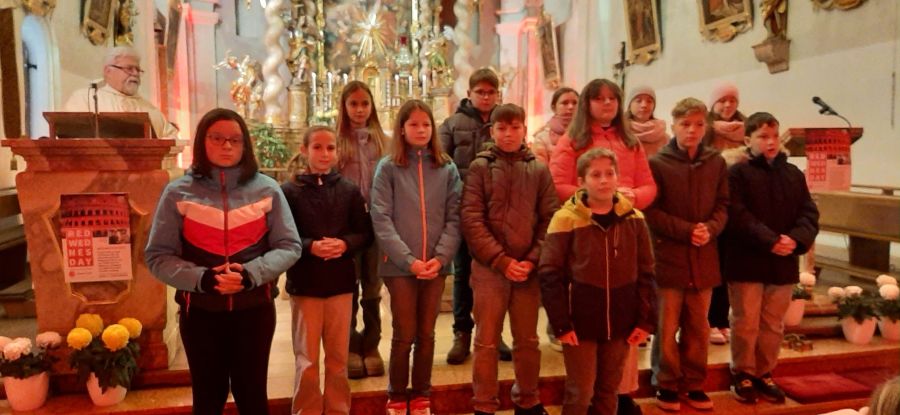 Musikalisch gestaltet wurde der Jugendgottesdienst vom Projektchor unter der Leitung von Rita Gleißner. Die 20 Sängerinnen und Sänger im Alter von 11 – 70 Jahren sangen schwungvoll und mitreißend Lieder aus dem neuen Gotteslob. Sie hatten seit einigen Wochen eifrig dafür geprobt. Begleitet wurden sie von Ulrike Schwab auf dem Keyboard und Viktor Schwab, der mit seinem Cajon für den richtigen Rhythmus sorgte. Am Ende gab es viel Beifall für die Jugendlichen und den Projektchor.