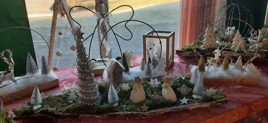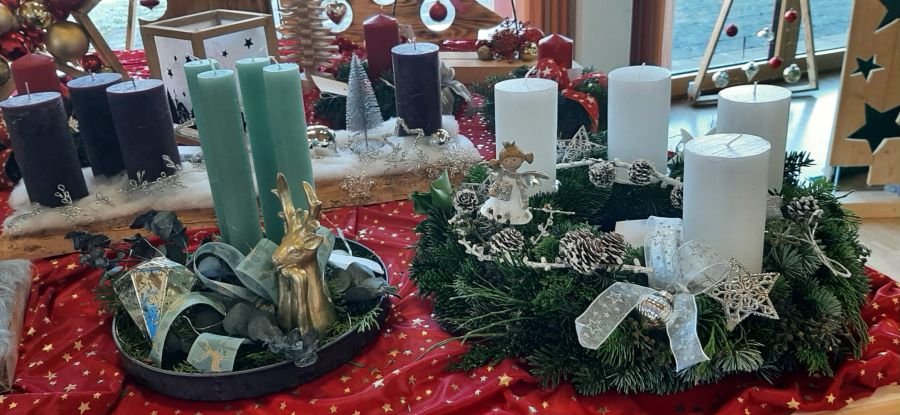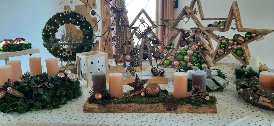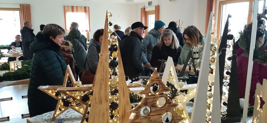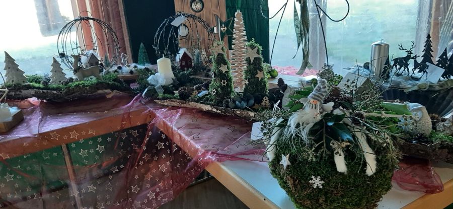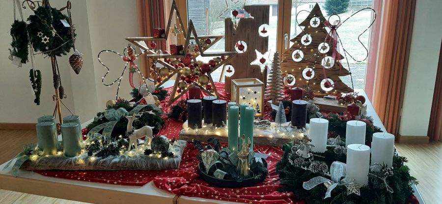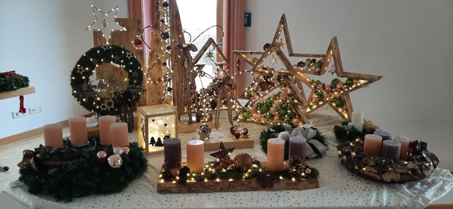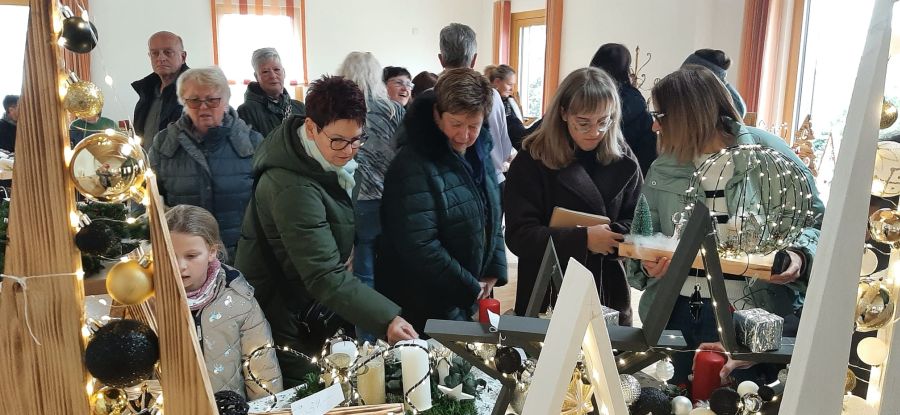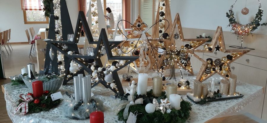 Luhe. Viele Besucher aus Nah und Fern kamen am vergangenen Sonntag zum Adventbasar des Luher Frauenbundes ins Pfarrheim St. Martin.  Zwei Tage lang hatten die Frauen gemein-schaftlich Advent- und Türkränze gebunden und dabei ganze Berge von frischem Grüngut verarbeitet. Dabei waren jeweils 10 bis 15 Frauen im Einsatz. Ursula Müller und Luise Köllner hatten vorab in Heimarbeit viele wunderschöne Bäume, Pyramiden und Sterne aus Holz und Moos gefertigt und diese mit Lichterketten, Kugeln in verschiedenen Farben und edlen Anhängern geschmückt. So konnte der KDFB Luhe den begeisterten Besuchern des Adventbasars ein sehr vielfältiges, tolles Angebot an adventlichen Dekorationen präsentieren, das stilmäßig von traditionell bis modern reichte. Die Kunstwerke fanden viel Bewunderung bei den Besuchern, die von den Mitgliedern des KDFB-Führungskreises mit Kaffee und hausgemachten, adventlichen Kuchen bewirtet wurden. Restlos ausverkauft waren am Abend auch die selbstgebackenen Plätzchen, die Mitglieder für den Basar spendiert hatten.